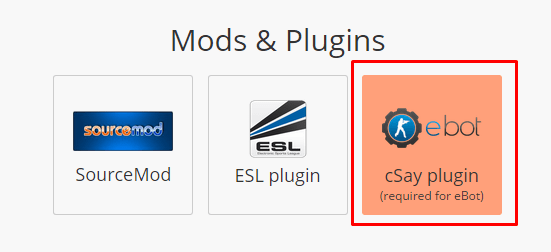 Go into the “Edit tab for your server, and then click on “Show advanced settings”. Scroll down to “Mods & Plugins” and click the box for ebot / cSay plugin:
