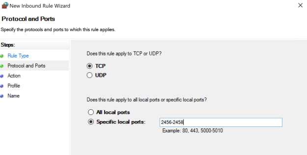 - To enable connections, you need to open specific ports on your server PC. Access your router’s software and open ports 2456-2458 for both TCP and UDP protocols on the PC where the server is operating. Set the Host Port as 2456. Remember, if there’s a firewall active on the server PC, you’ll also need to open these ports within the firewall settings.