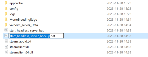 To do this, go to your Windows Users folder located at C:\Users\YOURNAME\AppData\LocalLow\IronGate\Valheim\worlds. Copy the files from this folder and paste them into the same folder on your server PC. - Navigate back to the Valheim Dedicated Server folder, as we did in step 3, and edit the file called start_headless_server.bat. On the last line, you will see the following:
