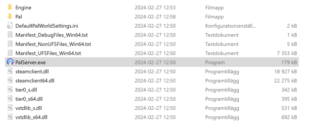 - Start the server by launching the Palserver.exe file. Let it run for about 2 minutes and then close the server. This is done to generate the necessary configuration files we need.