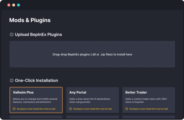 If you intend to run a Valheim server with mods, we recommend renting the server from DatHost: Valheim Server Hosting as it comes with mods available to install directly from a one-click installer.